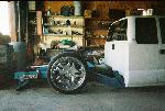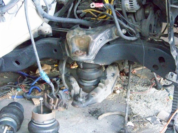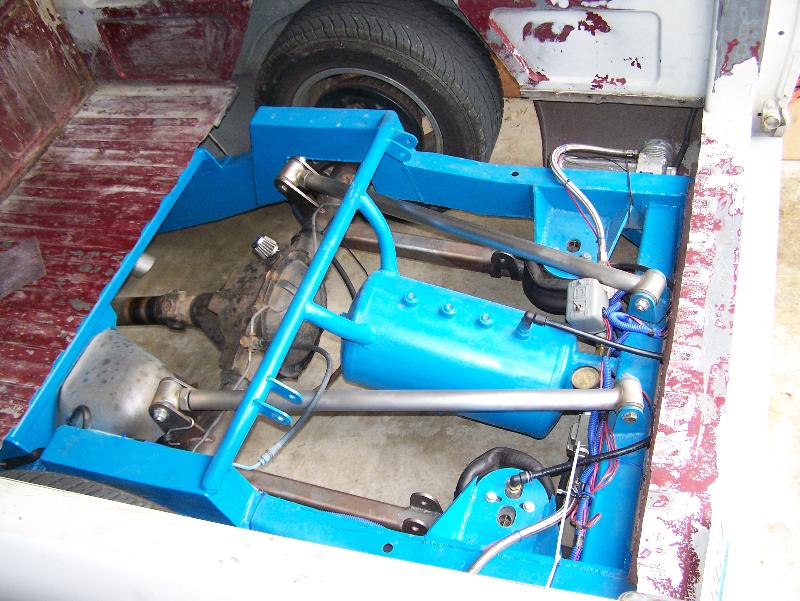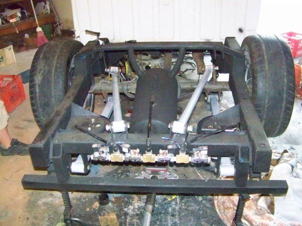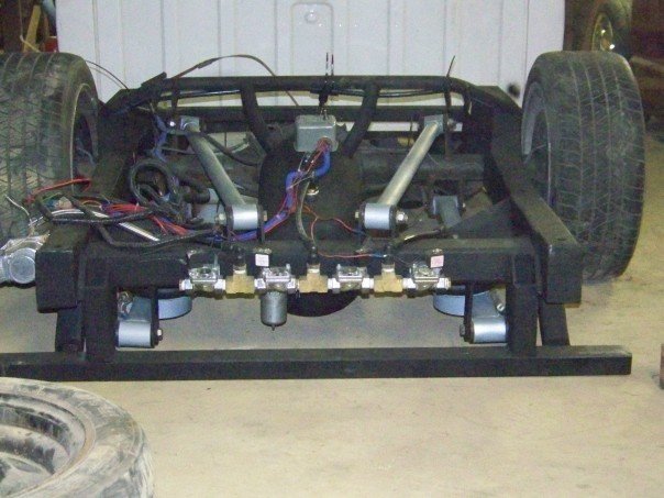 airlift 2600 bags in the back and 25's in the front, 8 1/2" airlift valves,1 450 compressor,1 5 gallon tank , custom reverse 4 link. 2 in" beltech drop spindels