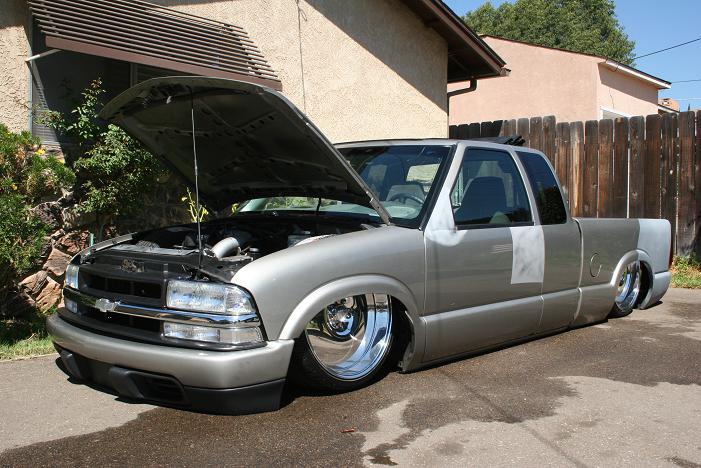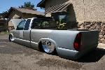 shaved handles, squirters, mirrors,3rd brake light, cali combo with colorado lights flipped upside down,38x40 electric rag, LineX bed, 3.75 inch chop