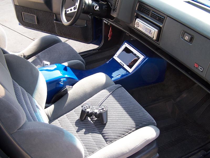 Celica GTS Buckets, Grant steering wheel, flamed door panels, TV and PS2 mounted in a fiberglass council, some painted pieces.