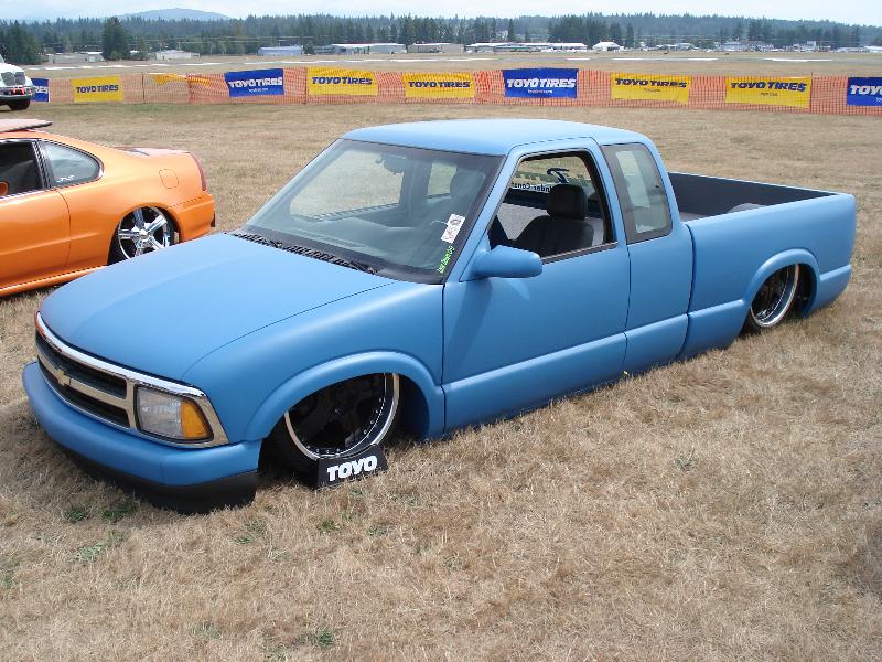 Shaved body seams, third brake light, antenna, door handles, washer squirters, cali combo. Shaved front bumper with frenched plate. 97 Blazer composite headlights and grill.