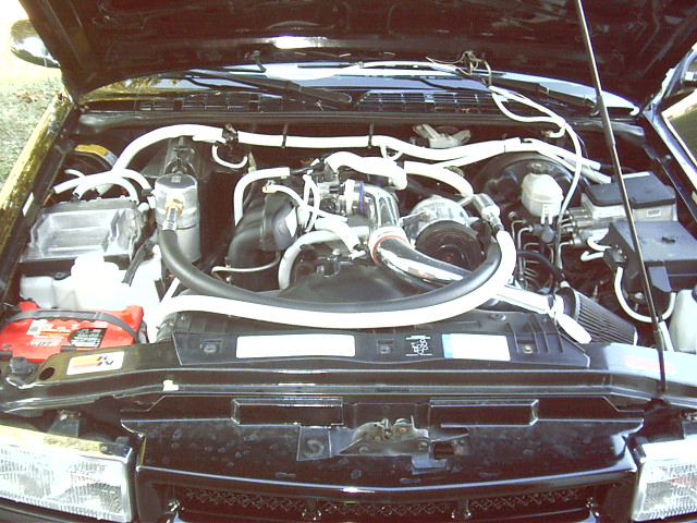 2.2L with a Sport Truck Specialties cold air intake. I have dressed up the engine with white wire loom.