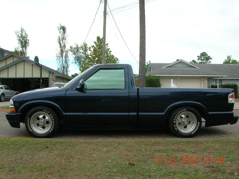 Indigo blue w/metalic flake, shaved door, and tail gate handles, painted mirrors and grill to match. Euro tails, clear front corners. Billet grill inserts. Spray-in bed liner. Full mirror window tint, tinted winshield. Yellow neons.