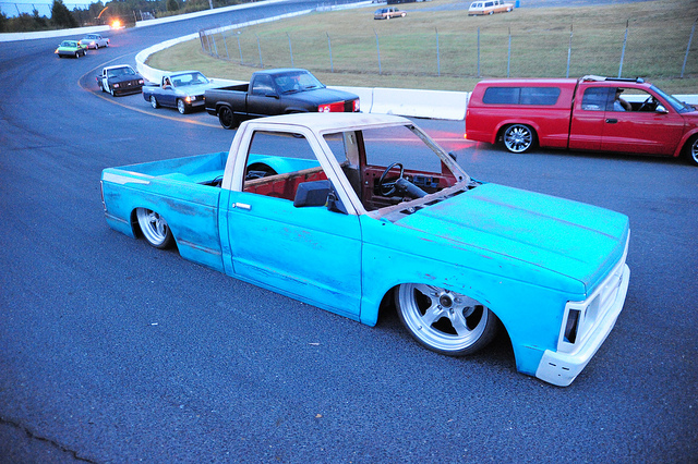 Hot Rod Flatz Tropical Turquoise. 3.5" Bodydrop, 3" Body section, 2" Extended back glass, Smooth sheetmetal bed floor. Smooth rollpan and smoothed tailgate.