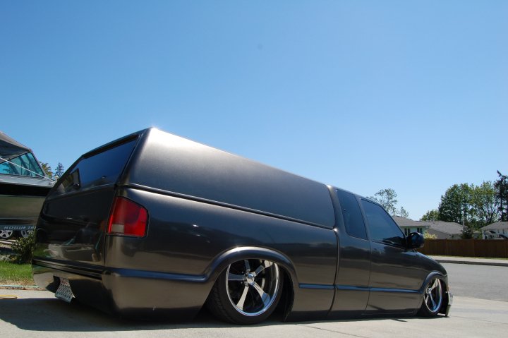 Front: Belltech drop spindles. Modified Stock LCAs and UCAs. Firestone bags. Rear: Suicide Doors 5-Link, SD Gas Tank xmember, SD Carrier Bearing xmember. Oasis HP1000 compressor.