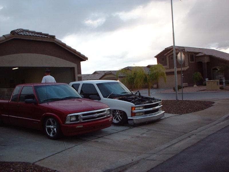 fab tec lift. then beltec lowering shocks and spindals, c notch, mono leaf, air shocks