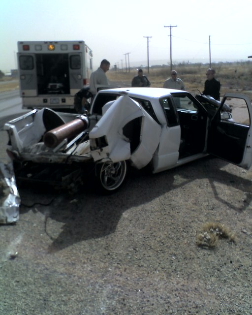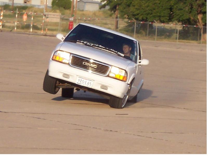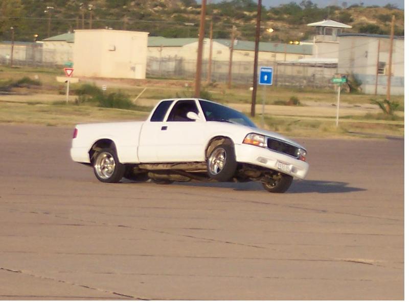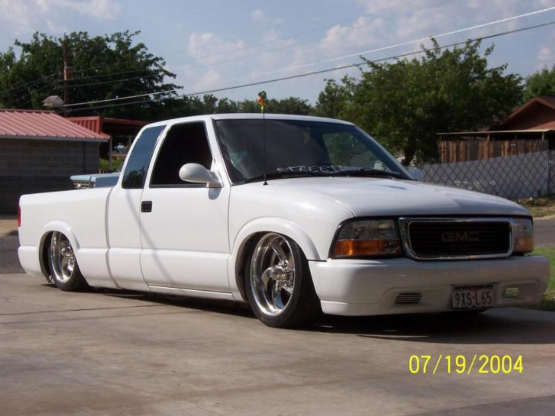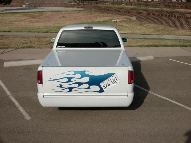 Whit extended cab, shaved tailgate handle and roll pan, frenched in license plate in tailgate at a 45 degere with painted triable flames coming off of it, 98-03 sonoma front clip