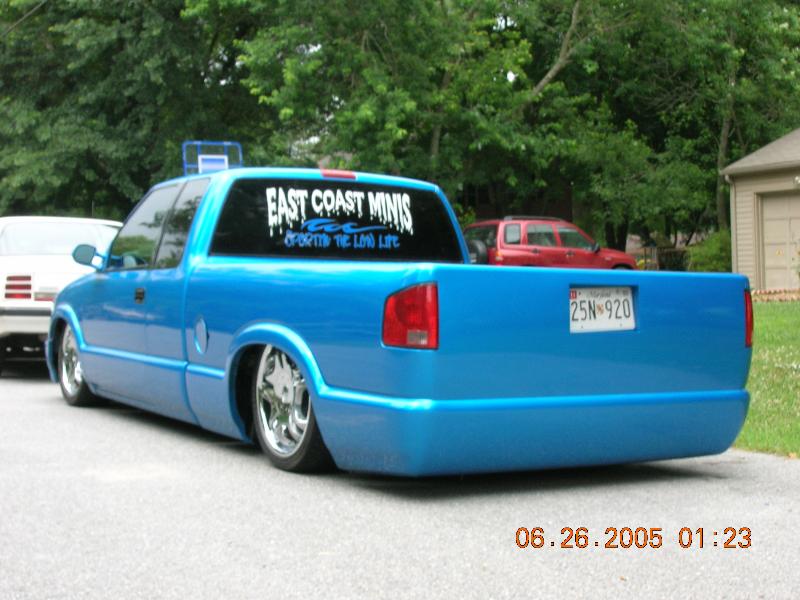 2004 sonoma front end with envoy clip fiberglass bed cover cowl induction hood. mold in my rear end fill in tail lights and get a skin combo with supra tails