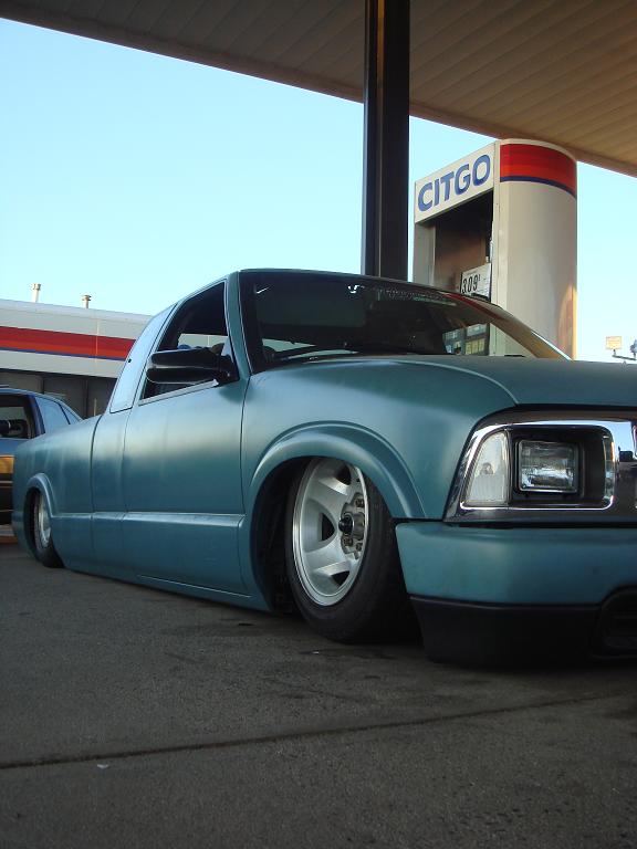 Shaved 3rd brake light, gas filler, door handles, windshield washer pissers, taillights, and antenna. Custom Hi-Tech L.E.D.s installed in the Cali Combo and custom tubs in the bed. Sport Mirrors, clear corners, chrome license plate holder, and billet inserts. New '98 style front bumper and valance. Tubbed and smoothed out bed. Also a 35x35" sliding ragtop from Street Beat Customs. One piece solid wiper cowl from Stylin' Concepts. Oh yea, Long Bed Conversion.