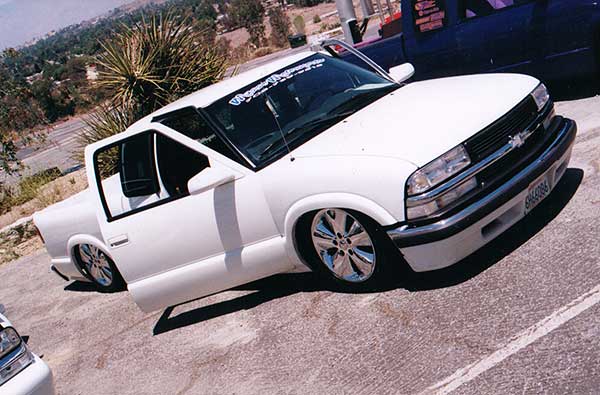 Smooth Rollpan, shaved tailgate handle, color matched handles, street scene power mirrors, Trenz billet grille inserts, clear marker lights.