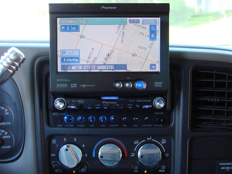 pioneer avic n3 dvd navigation player, 2 jl audio w6 under the back seat, arc audio 2500 for bass, and arc audio 2050 for kenwood highs