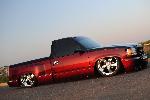 PP&G Black and Candy Apple Red 2 tone paint, 2000 Cadillac Escalade front clip conversion, A.R.E Tonneau cover, Street Scene rollpan, Street Scene sport mirrors, Billet step plates, shaved antenna, shaved tailgate, Euro style taillights, 8 Whalen strobe lights-4 front, 4 rear, Plasma-glo 48" rear light bar, Billet door handle covers, Billet 3rd brake light cover and Billet wiper post covers.