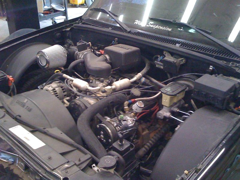 A programmed 5.7L (350) with an Airraid cold air and a Helix power tower throttle body spacer, MSD ignition, Magnaflow exhaust