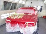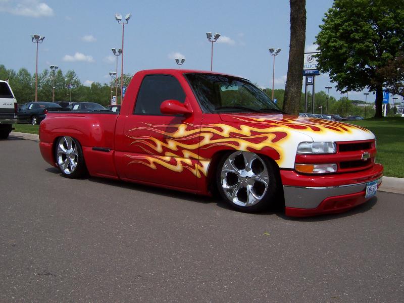Shaved: Door handles, tailgate handle, third brake light, custom flames by Lenny From Krazy Kolors