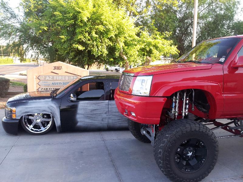 Full shave job..Black & gray primer..led tail lights...escalade side mirrors..