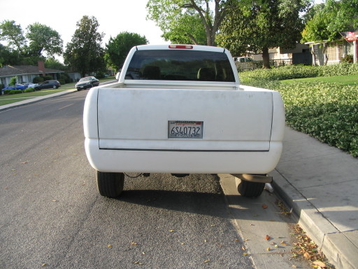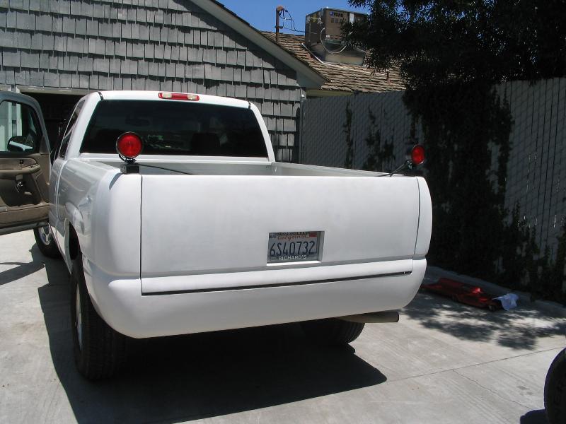 Rocking the white primer front and back! Shaved Tail Lights, FBI Rollpan welded in, FBI Tailgate Handle Relocator, FBI Licenseplate Box Frenched in Tailgate, Shaved Door Handles, HD hood...Rockin magnetic trailer lights for now. 07 Tahoe front end is still under construction...