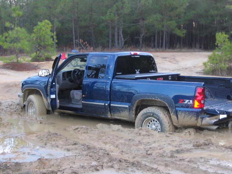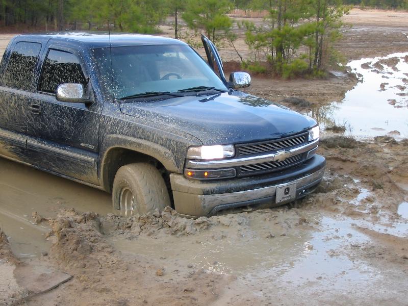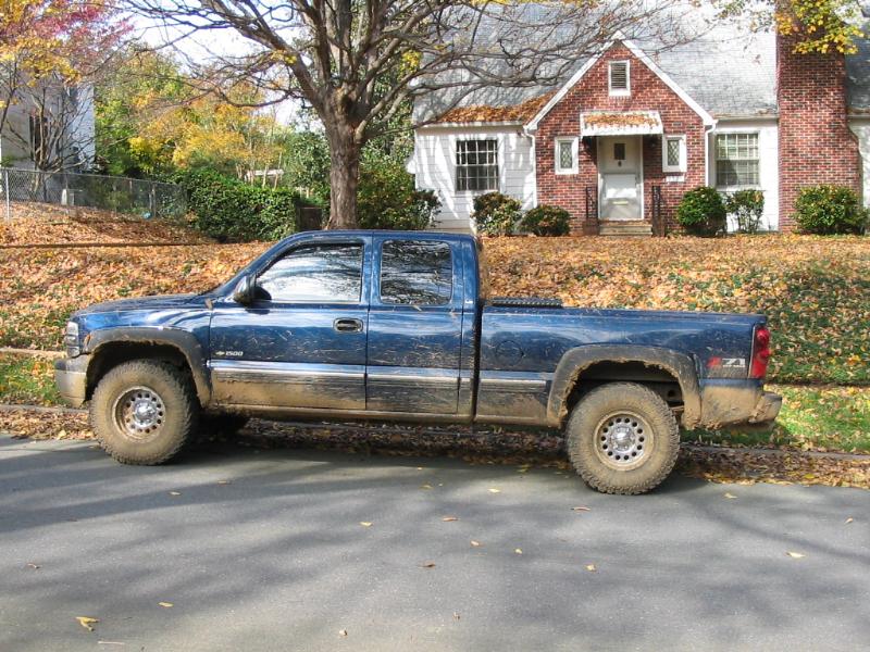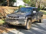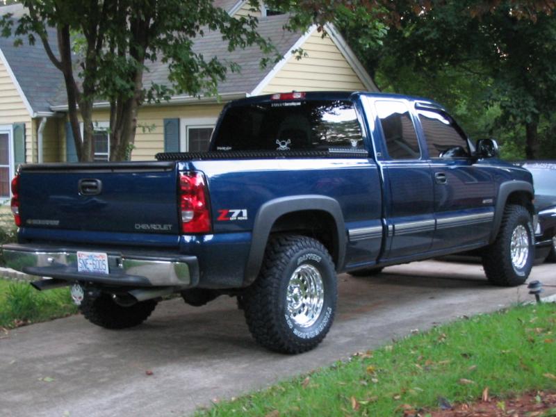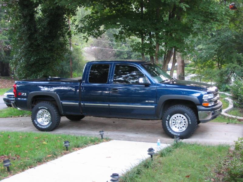 dk. blue, tinted windows, billet grille, '04 tails, 3/4 ton black fender flares, black housing clear corners, Sylvania Xenarc HID conversion headlamps........SOLD IT!!!