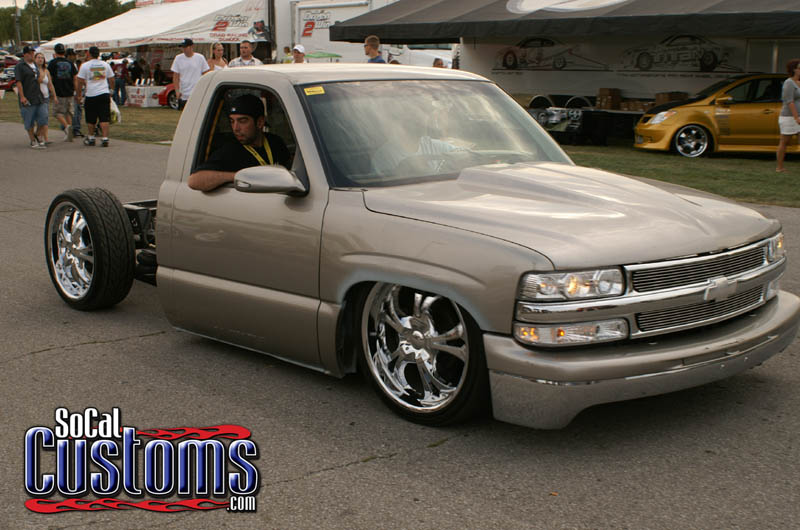 Shaved doors, gas door, stake pockets, taillights, tailgate, 3rd brake light, Crystal Eyes mirros, LEDs, tubbed firewall