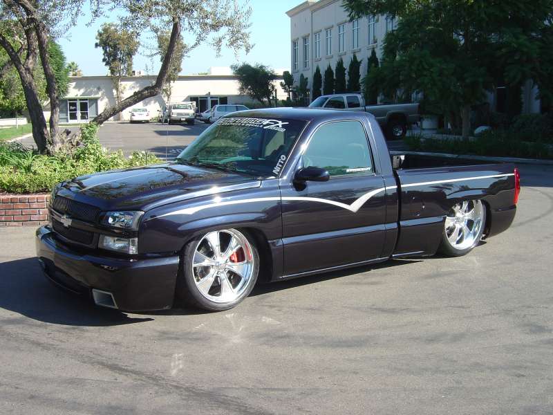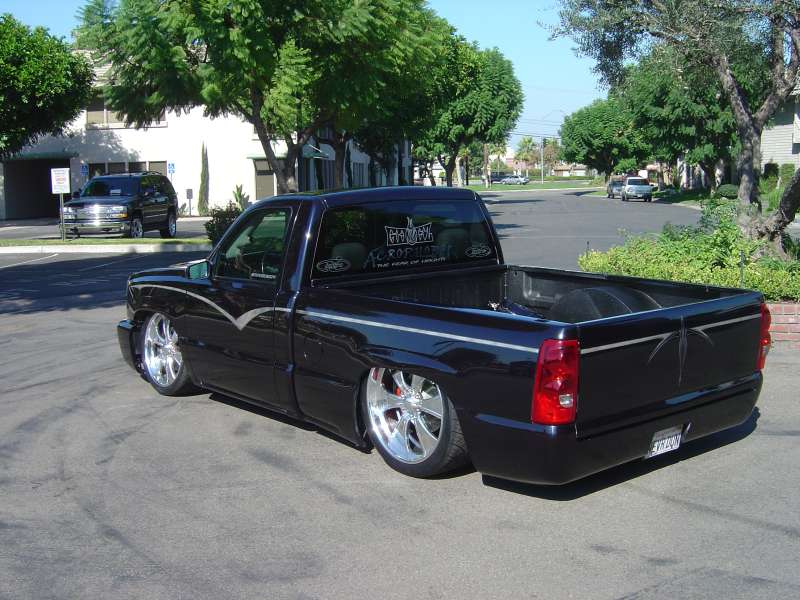 Shaved tailgate handle and rollpan by Sir Michaels. Trenz billet antenna. All body work done by Anaheim Prestige in Placentia, CA and Steve Vandemon of Absolute Custom Paint.