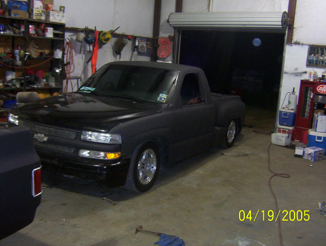 cab matte black and shaved...new fenders.new bed with raised floor need to be finished 20s