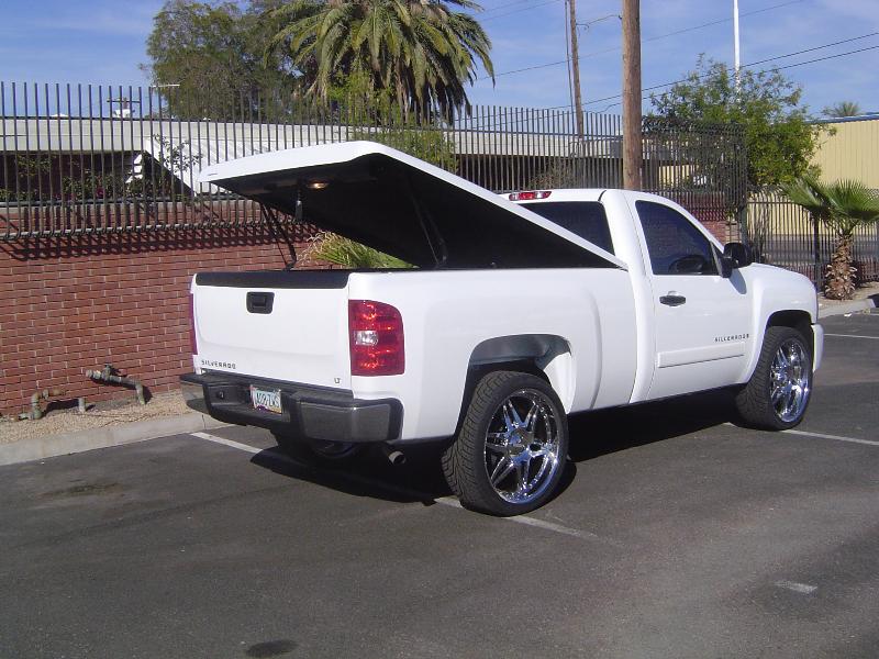 Stock White, With LEER 800 Series bed Cover with a Bed Rug, Webasto Power sliding sunroof, T-Rex Billet grills upper and lower, Streetscene roll pan, Painted to match door handles and lower front cover, Mirrors painted to match