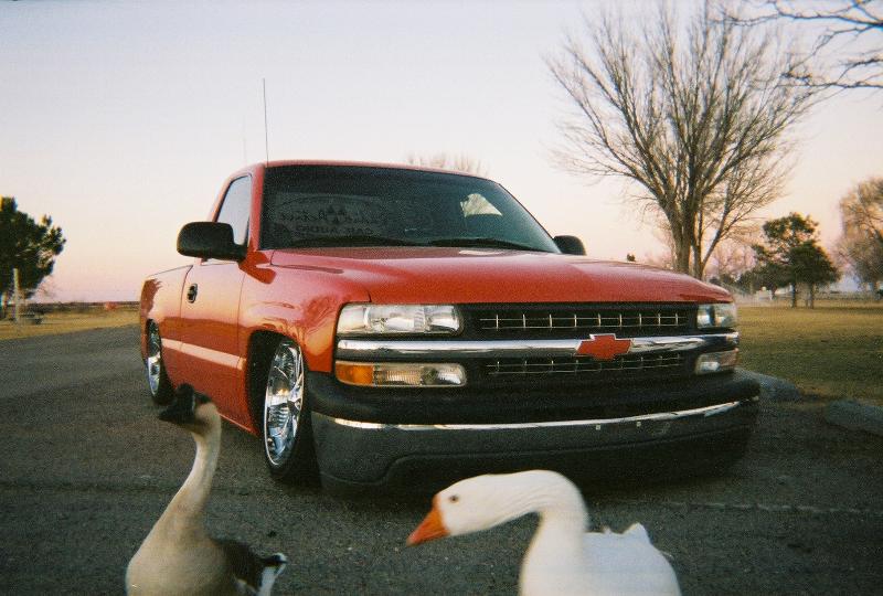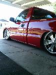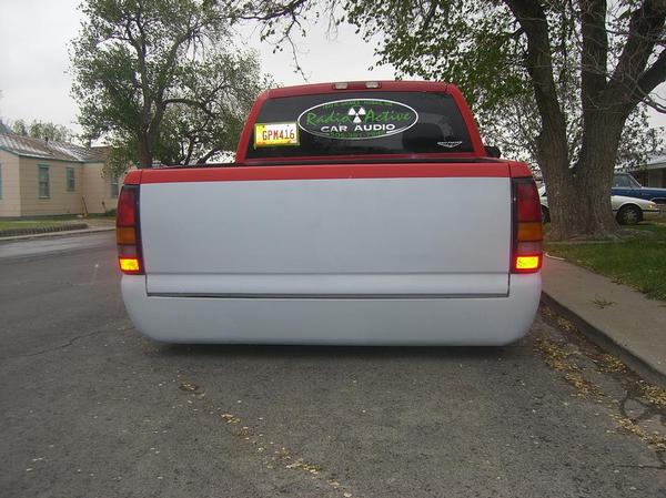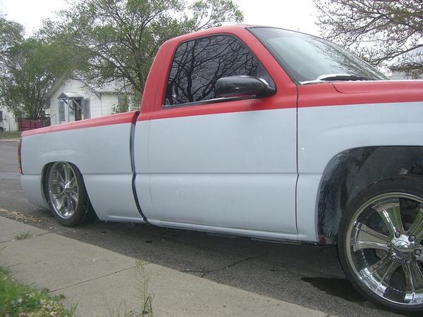primer TW0-TONE WHITE AND RED, suidice doors, roll pan, shaved tailgate handle, shaved bed stake pockets, ss mirros,shaved handles, paint matched bow tie, flowmaster, removed moldings, devious customs fuel cell