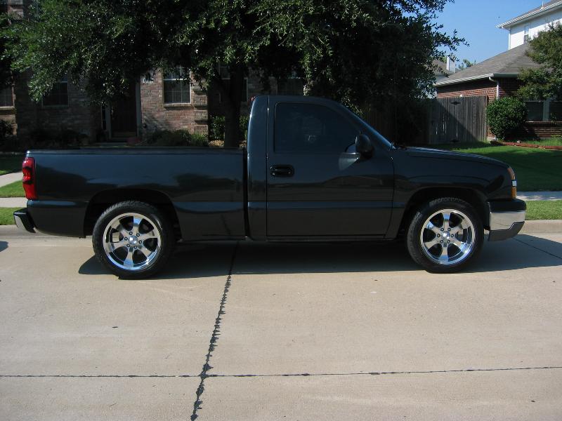 I am saving up to bag the truck right now (I am 18 and doing all of this while still paying for the truck itself). If I don't bag the truck, I might swap the 6 for a 6.0L V8 or just build up the 4.3 completely. If I do that I will change the suspension around also, but it will be springs and shocks and sway bars and lower it a couple more inches. I am planning on getting an ss front bumper cover and paint matching it along with the door handles and the other black plastic parts on the truck. Maybe a billet grill. I am going to re-do the stereo and move things around, make it cleaner and maybe build a new box and an amp rack. Replace the sub amp with a JL 250x1. Paint interior peaces possibly. Replace stock seats with 2 leather seats and a console out of a wrecked truck. Thats about it. I will get better pics later on.