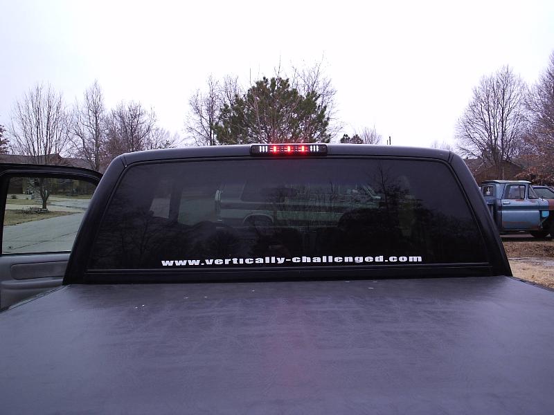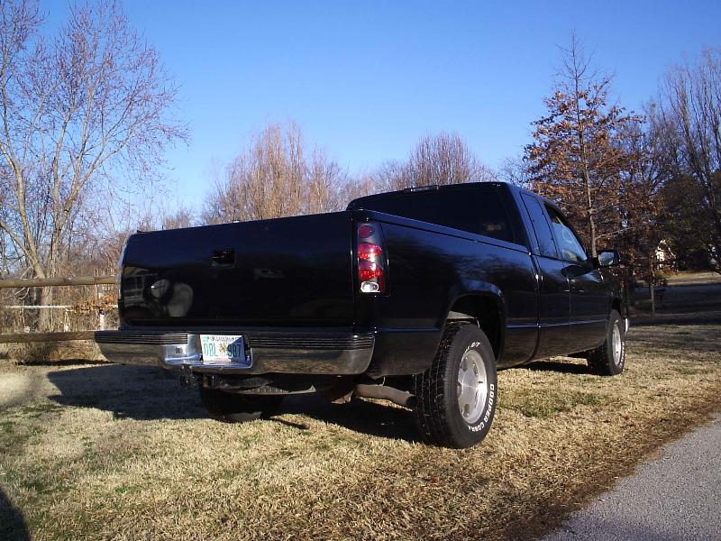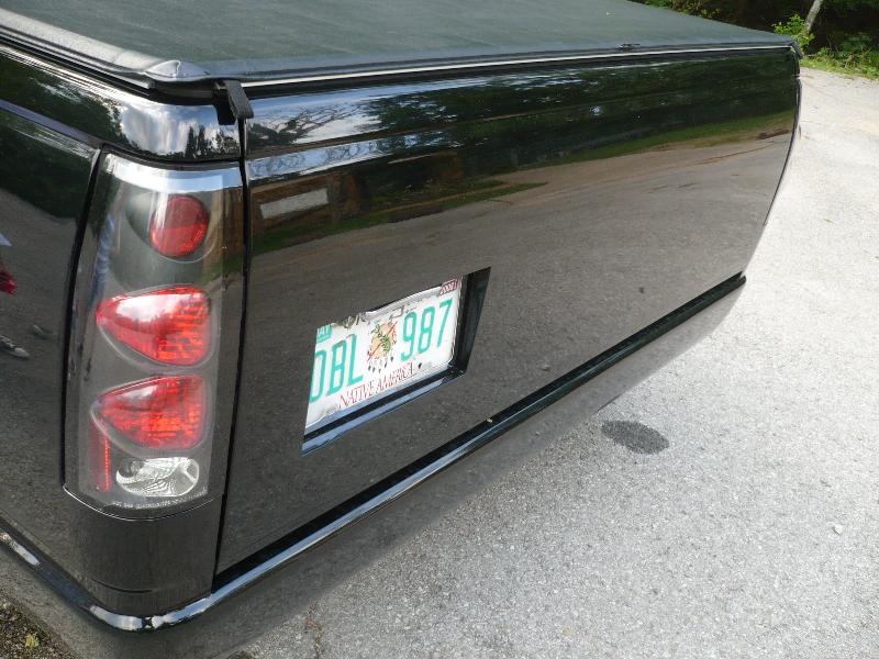 Chrome bowtie, TYC Clear Headlights, Clear Turn signals, Clear Corners, LED 3rd Brake Light, TYC Black Euro Taillights, 5% Tint, Smooth Roll pan, Tailgate handle fliped and shaved, License plate box in tailgate, Shaved Stake Pockets