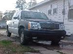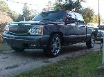 2005 Escalade front end with vertical billet grille, shaved tailgate handle and rear spoiler, molded in rollpan, sport mirrors