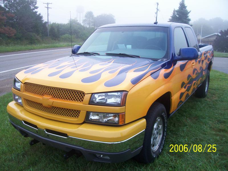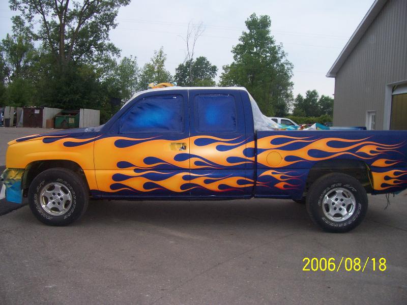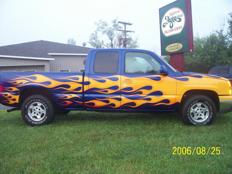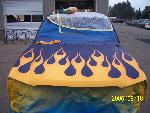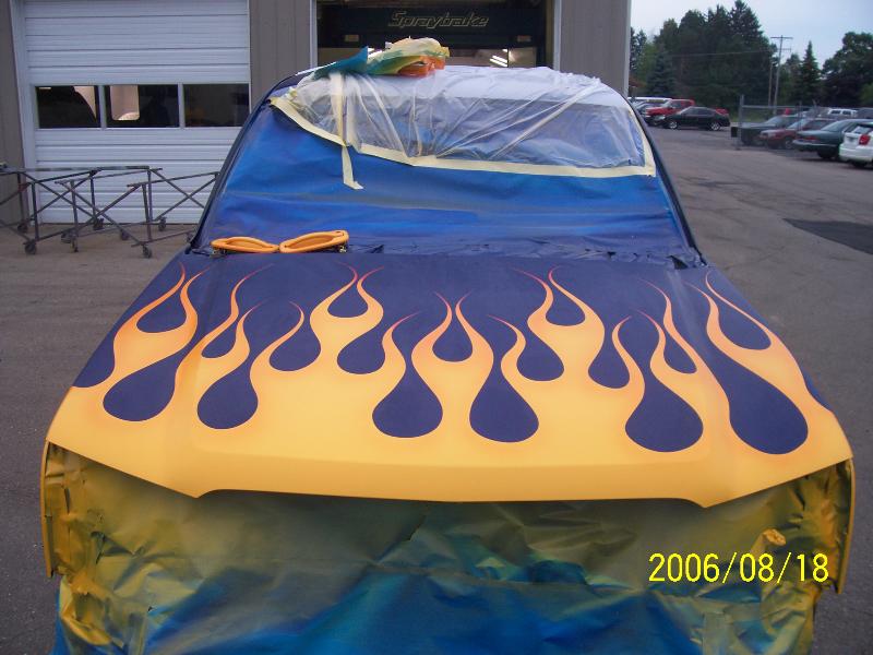 TRUE BLUE W/ BLUE ICE PEARL, YELLOW ORANGE AND RED FLAMES