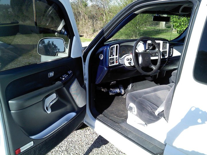 inside paint blue and white and sliver on dash and stuff