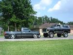 bagged on 22's. Ekstensive 2 link. with 1/2 inch stainless lines. gc 450 valves. tubbed all 4 corners. bed sprayed with line x, devious customs raised tank, dual nitrogen bottles with bottle rack, drag mounts