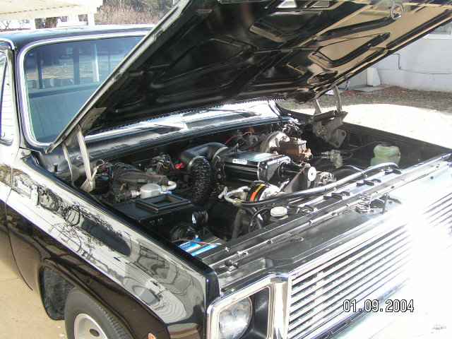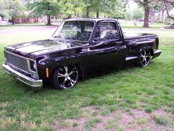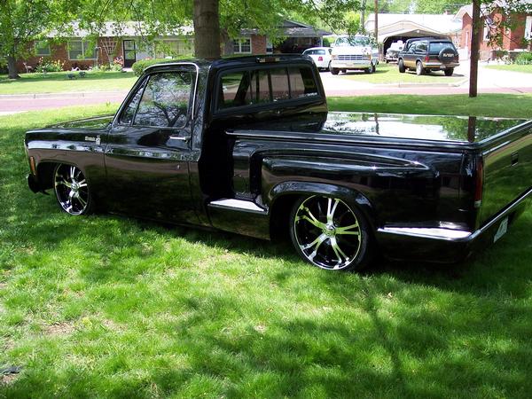 kinda black.. Crystal Black,with a 93 or 94 late Model Step-side bed, fiberglass bed cover, Billet Step Plates