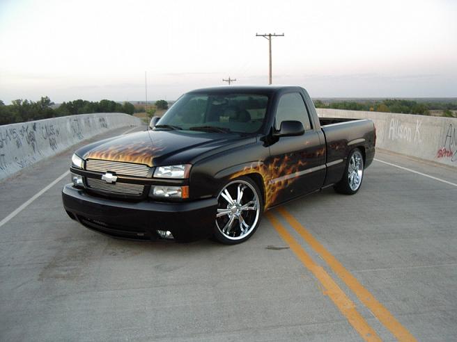 Custom Paint By Charles Degand at CD Designs in Moore, OK. Shaved handles and tailgate, Molded in rollpan, billet emblem and grille, painted mirrors.