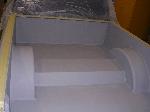 Slicked and painted dash, Billet Dash bezel, Nu Image white Blue flame guages, blue neons under dash, Billet shifter, every dash piece is billet, Billet knobs, Gauge pillar with 2 air gauges, 5% window tint on rear glass. FBI 8 switch billet control box