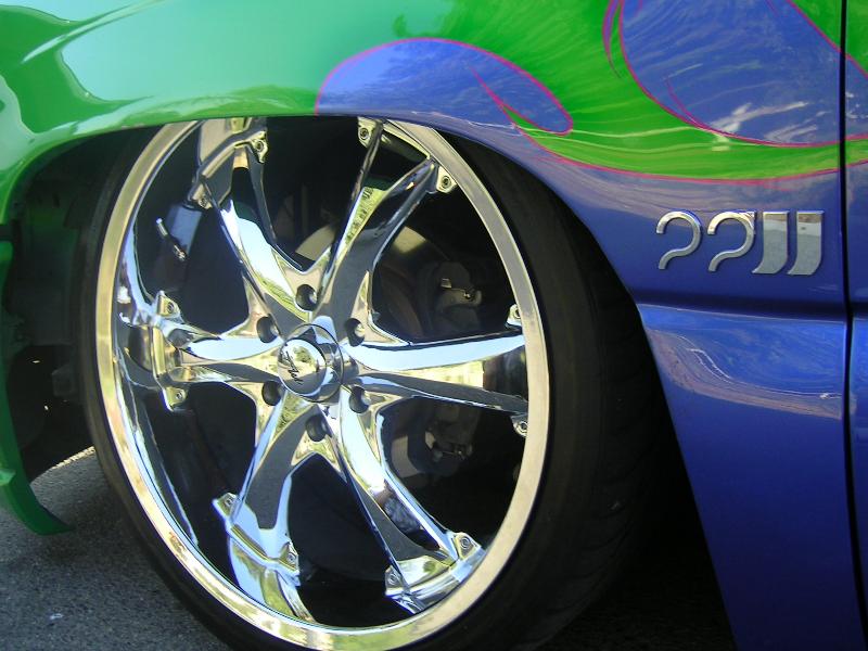 Electron blue matelic with pearl/lime time green/pink outline
