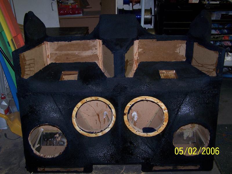 All ALPINE Equipment, 6000 watts, 6 amps total, all Stinger wires and Cap, Alpine D310E DVD Headunit, 8 sets of Alpine X Series seperates, 4 Alpine X series 12" sub's, All handmade fiberglass enclosures built by us, includeing doors, kicks and box and amp rack.
