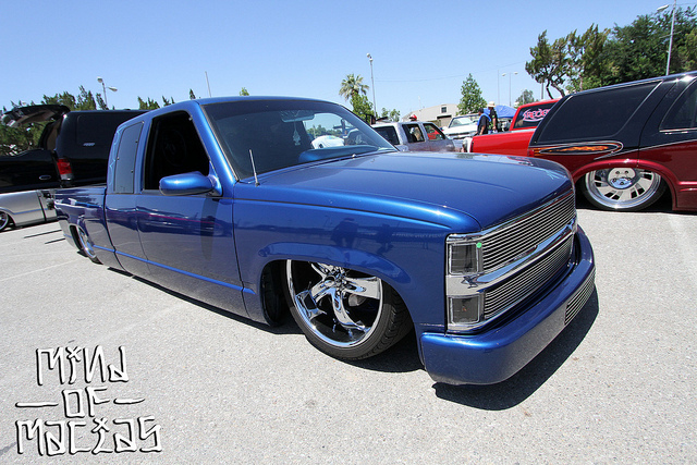 SHAVED DOOR HANDLES, TAILGATE HANDLE, TAILIGHTS, FRENCHED CADDYS, 15" FLUSHED LED IN THE CAB, MOLDED ROLL PAN, TRENDZ FULL PHANTOM BILLET GRILL, SMOOTH FRONT BUMPER WITH GRILL INSERT