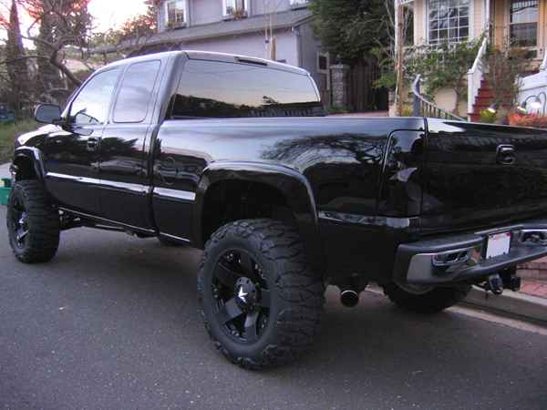 Painted fender flairs & door handles, SS front valnace & tailgate cap, demolding, billet grille, clear corner fronts, custom smoked 05 tails & 3rd light, painted mirror inserts. Blacked out, (exept rear bumper)