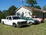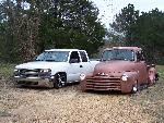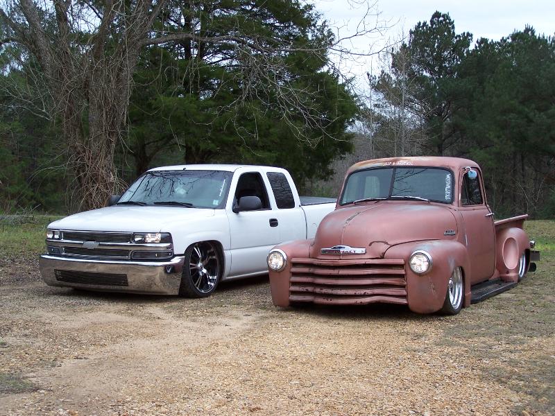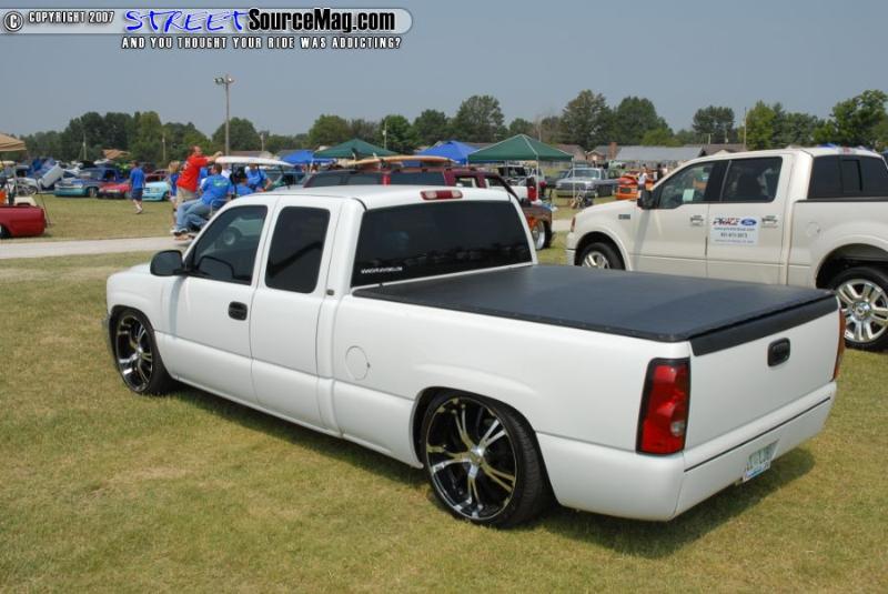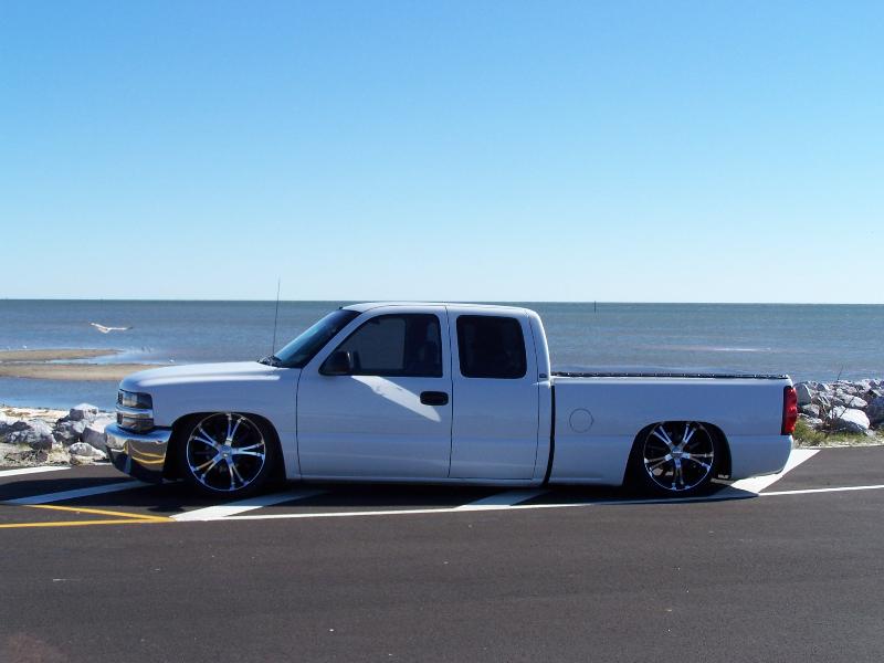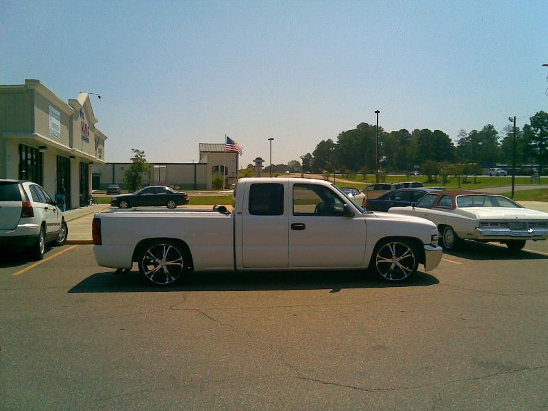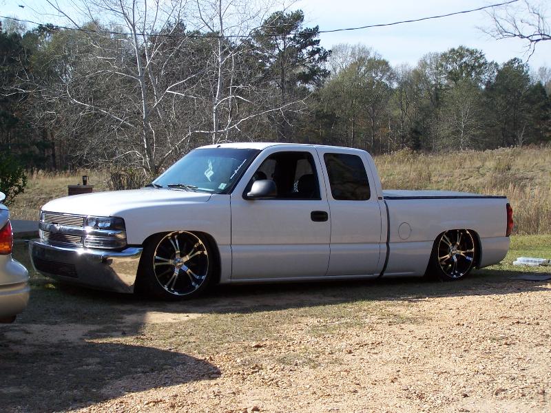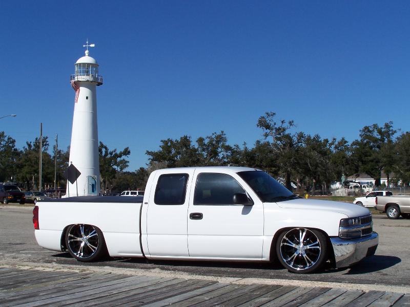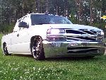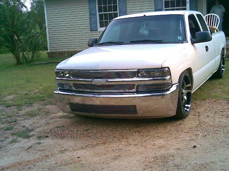 Chrome Tahoe grill with billet, smoked headlights with 12000k HIDs smoked corner lights and wierd chrome front bumper with billet inserts. 05 taillights rollpan