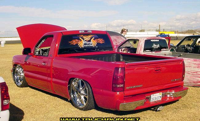 painted to match front and rear bumper, grill, mirrors,and door handel buckets with Grippin billet flamed handels billet grill tinted windows and Reflex spray in bed linner