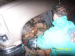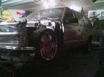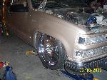 over at a friends house getting cut up to lay out on 22"s, got slam bagz triangulted 4 link GC valves EDC and 8 gal chrome tank