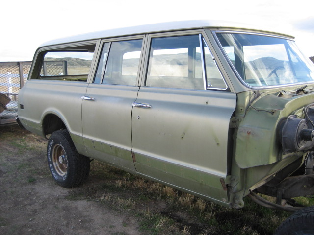 1970 burb cut to a quad cab, custom made 4th door, pickup roofline, stock truck trim airbrushed