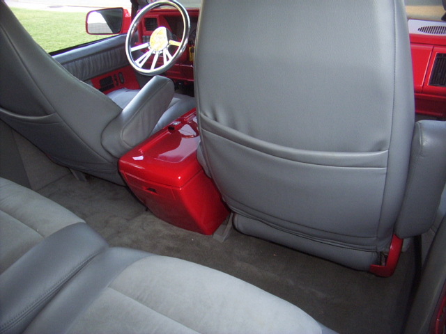Katzkin Leather and saude seats, Full color change, new headliner, Painted almost all plastic, Painted Dash, Hand painted logo and Darryl Starbird autographed glove box, Custom Console with Clarion TV.Custom made Carpet. Billet Door sills, B.A.D. Gunslinger steering wheel.Billet Specialties wheel adapter Tubbed to the glass