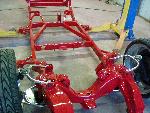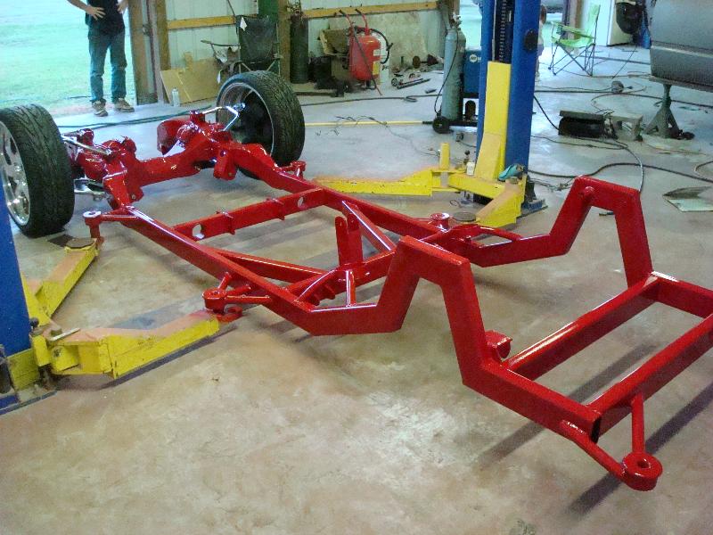 ready for paint and body frame is done sandblasted and painted looks pretty and shiny