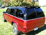 Two tone candy red and black with a silver stripe and lime green pin striping. Shaved handles and roof rack and welded in roll pan. Oh yeah, and a growl hood.