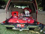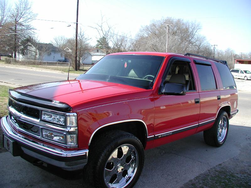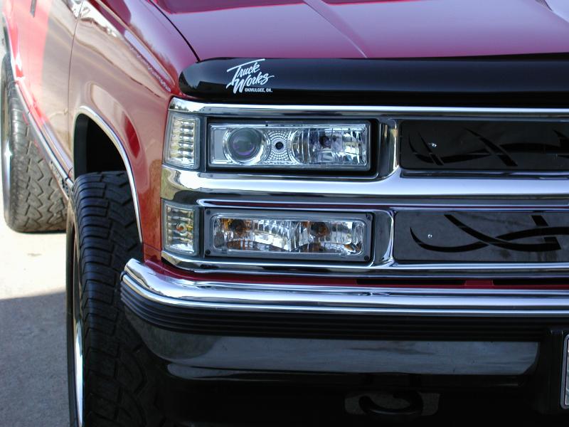 Cowl hood, custom tribal grill, euro's all the way around, chrome fender trim, chrome nerf bars, billet gas door, and a Wind Jammer fin.