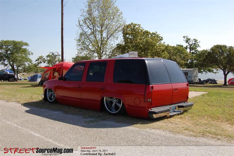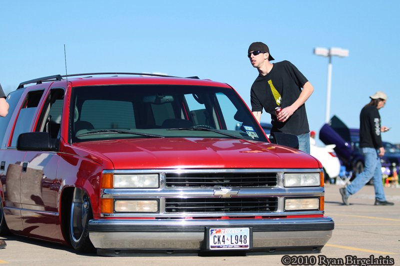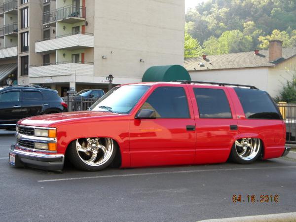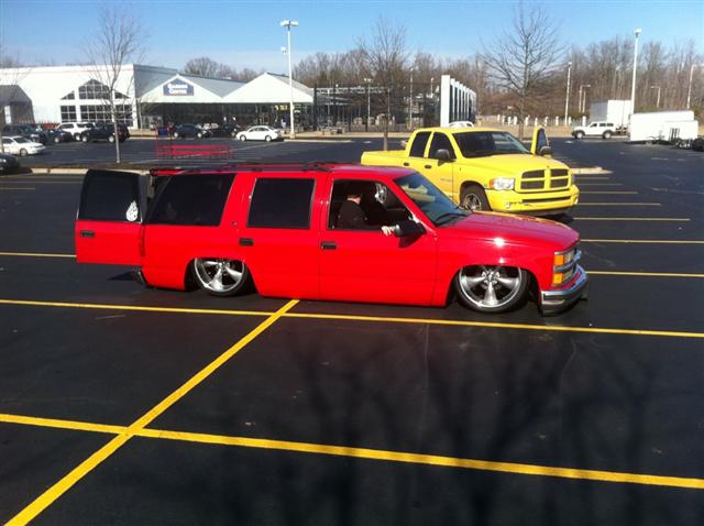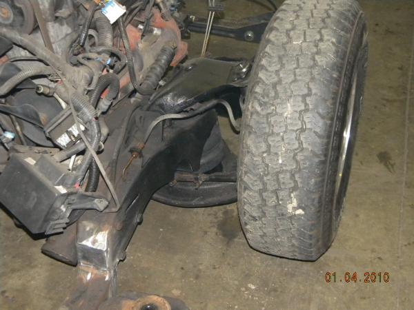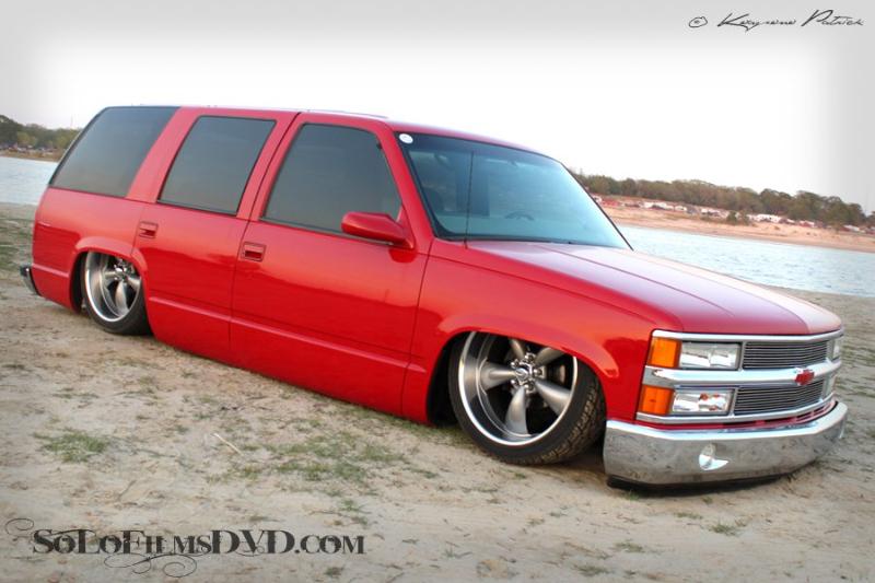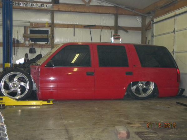 Front: Pie cut upper control arms, dehumped lower arms, drop spindles, frame notched for tie rods, tubbed firewall, Airlift 2600s