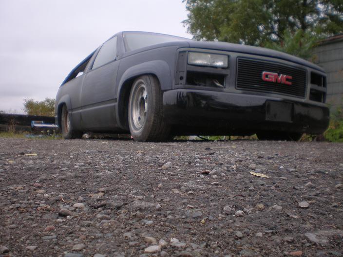 3 1/2" body drop, staggard 4/8 chop top shaved handles,rollpan, mustang cowl hood moulded on stock tahoe hood
