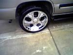 22in 150 dayton wire wheels w/80 spoke spinners tires 265/35/22 will be changing to a 305/45/22 or 24 in rims.