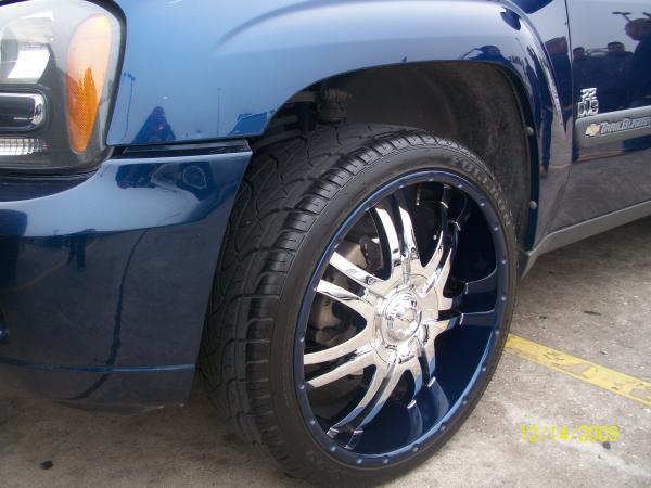 blue trailblazer on 22s with smoked tail lights and third brake light